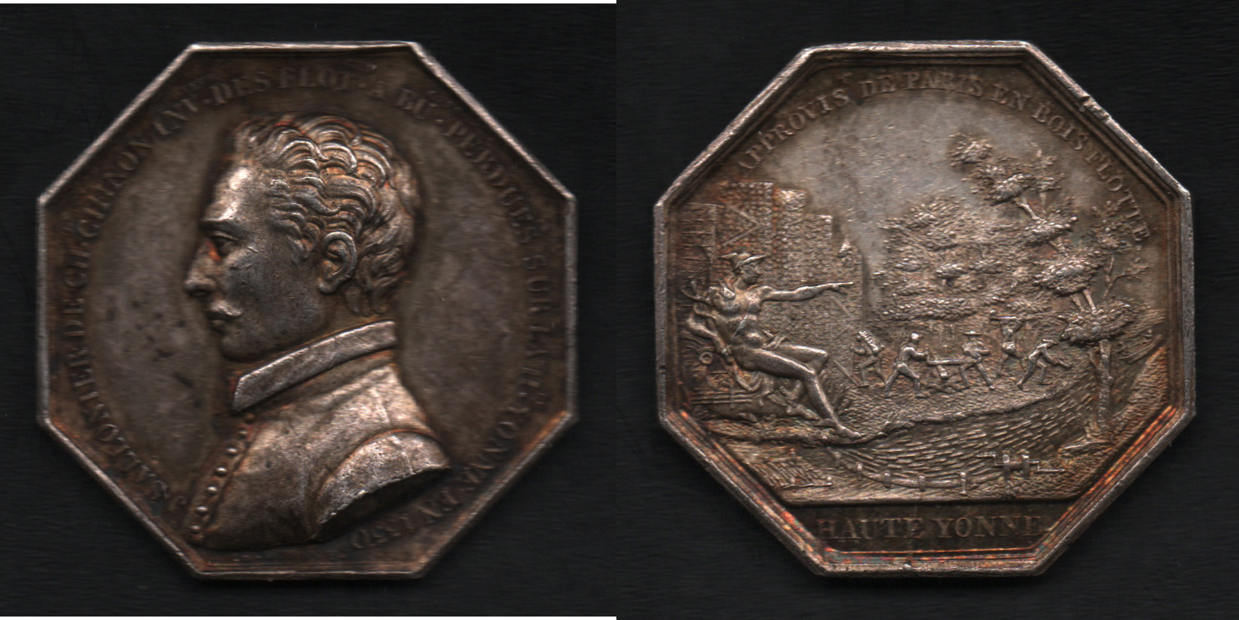 J.Sallonier de Chinnon - lodní doprava Blois - Paris 1550 (1850) - poprsí zleva, opis / Merkur a dělníci v krajině, písmo, Sign.Dubois, Ag 33x33 mm, 17.322g