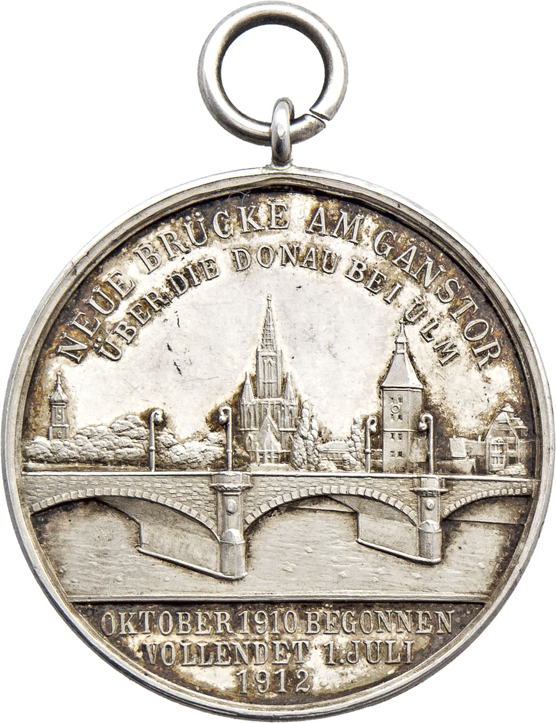 Miller - AR medaile na otevření nového mostu 1912 - most, město a nápis / znaky, souboj člunů na řece, nápis, Ag950, 15.126g, 32 mm, pův.ouško, dr.rys., tém