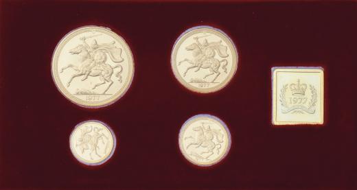 Série mincí ve společné etui - 5,2,1,1/2 Pounds 1977, KM.29,28,27,26 (Au917, 39.81g, 15.92g, 7.96g, 3.98g, pouze 1250 sad), certifikát číslo 349 RR!