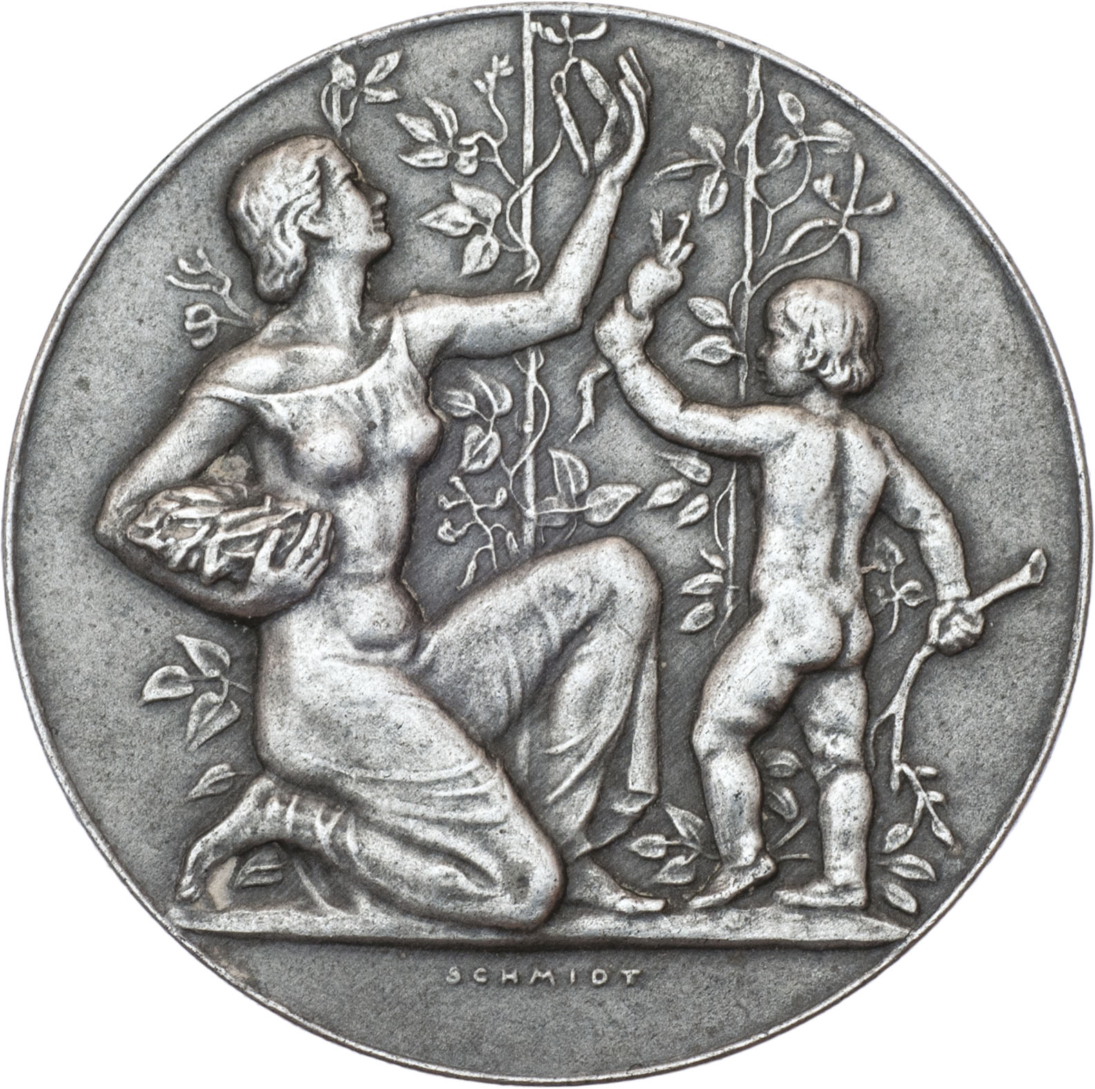 Schmidt - hospodářská komunita Reichsgau-Wien 1943 - žena a dítě pracují v zahradě/ znak, 5-řádkový nápis, zelenina, Sign., patinovaný zinek 50 mm, téměř R!