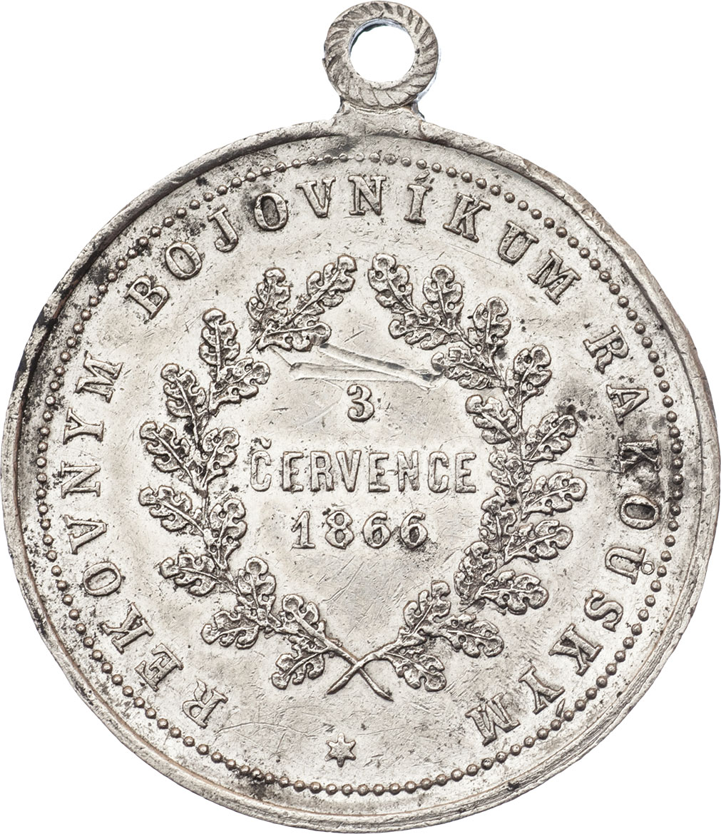 Hradec Králové - pomník bitvy 3.července, Nesign., cín 32 mm s původ. raženým ouškem, hr., škr., rysky