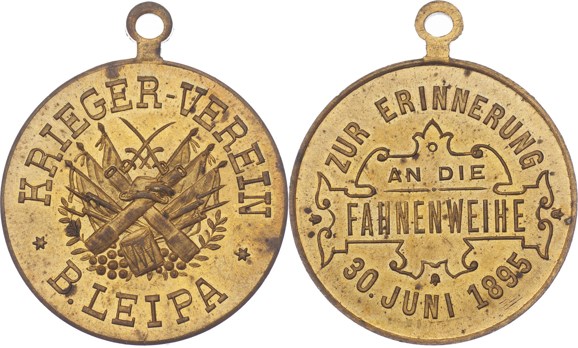 B.Leipa (Česká Lípa) 1895 - svěcení praporu 30.6., Nesign., zlacený bronz 31 mm s původním raženým ouškem, Indra.str.37, patina