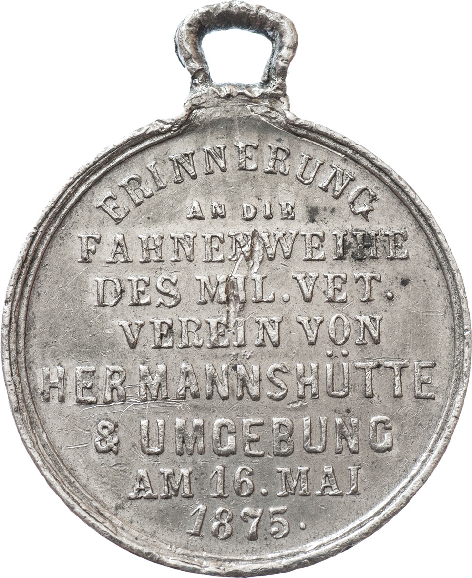 Hermannshütte (Heřmanova Huť u Plzně) 1875 - svěcení praporu spolku arcivév. Rudolfa, Nesign., cín 30 mm s původním raženým ouškem, Indra.str.39, hr., rysky