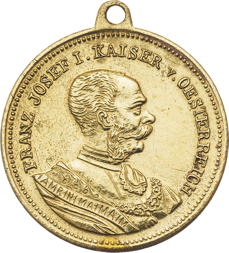 Kukan (Kukonín u Jablonce) 1902 - 25 let trvání spolku 13.7., Nesign., zlacený bronz 28 mm s původním raženým ouškem, Indra.neuvádí, nep.rysky, téměř