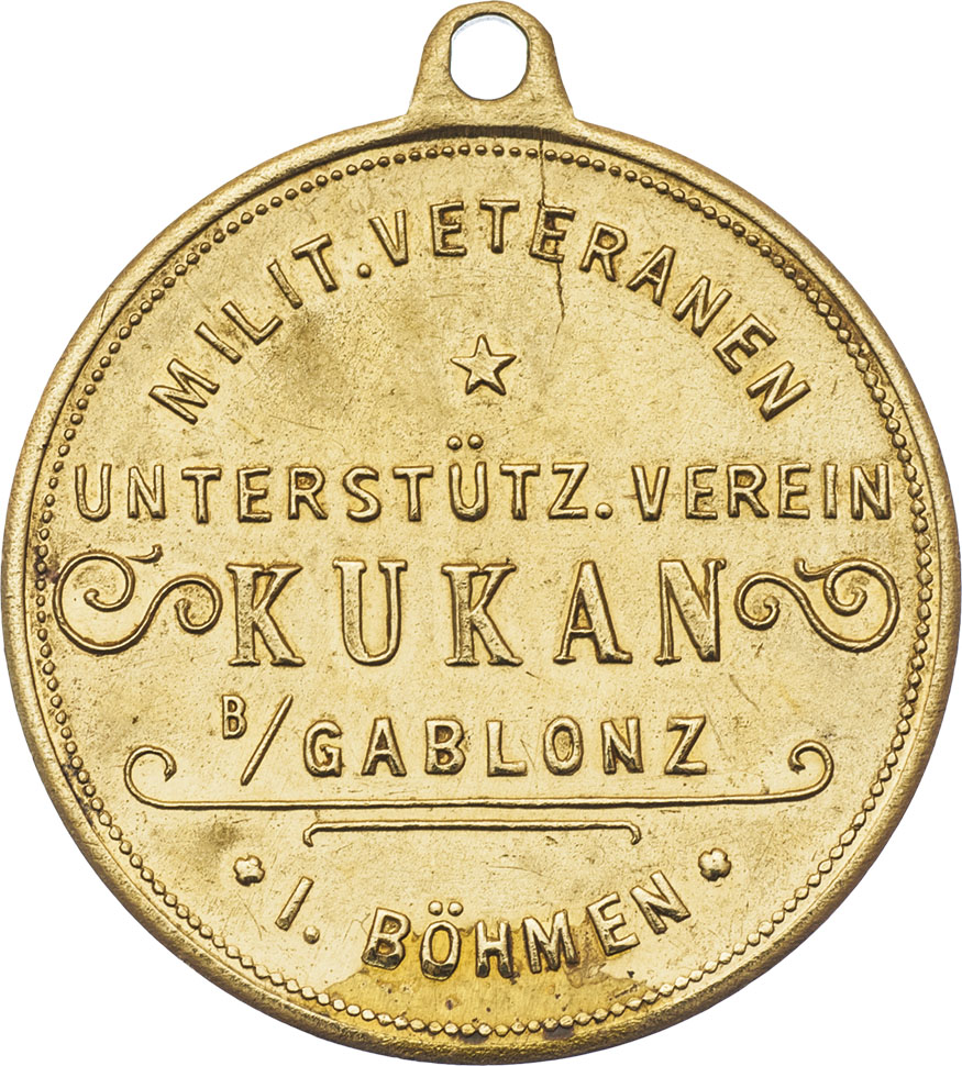 Kukan (Kukonín u Jablonce) 1912 - odhalení válečného pomníku 23.6., Nesign., zlacený bronz 28 mm s původ. raženým ouškem, Indra.str.41