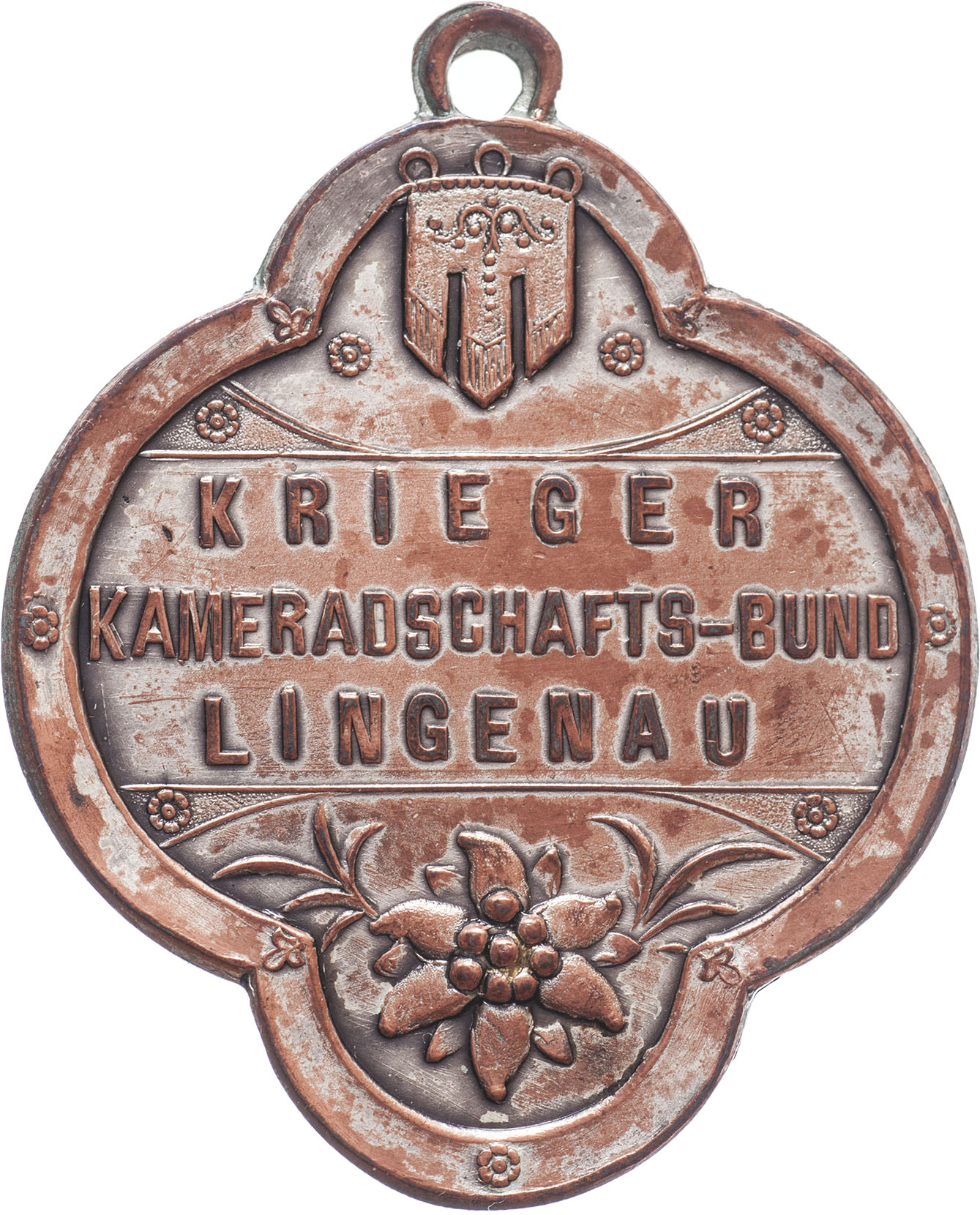 Lingenau b.l., Nesign., pocínovaný měděný plech 42/45 mm s původním raženým ouškem