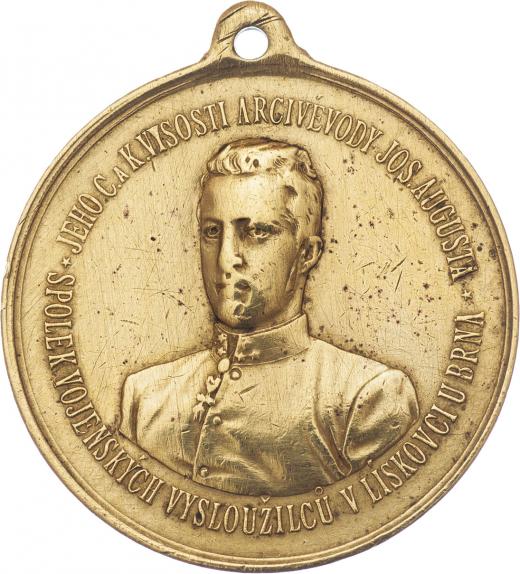 Lískovec u Brna 1899 - spolek arcivév. Josefa Augusta - svěcení praporu 25.6., Nesign., mosaz 34 mm s původním raženým ouškem, Indra.str.43, dr.hr., rys.