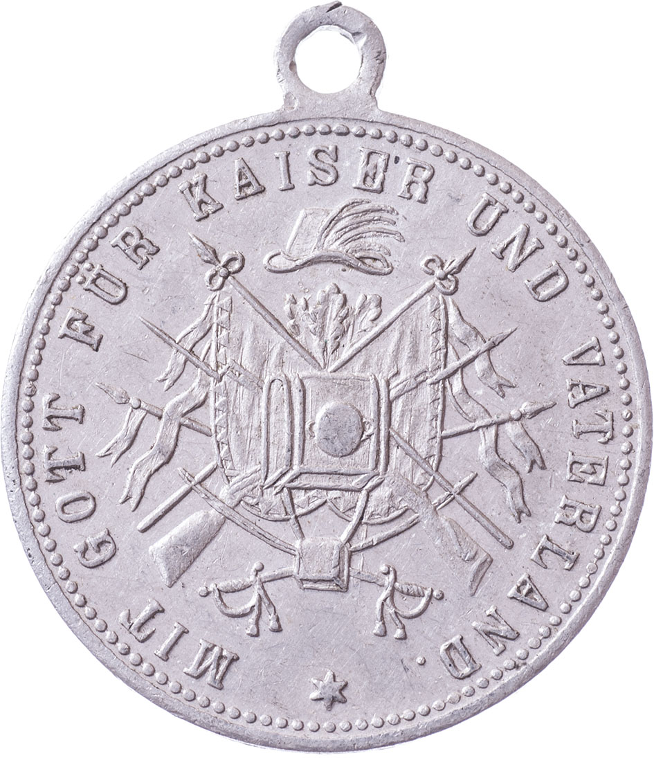 Machendorf (u Liberce) 1899 - založení a svěcení praporu 16.7., Nesign., hliník 29 mm s původním raženým ouškem, nep.hr., nep.rysky, patina R!
