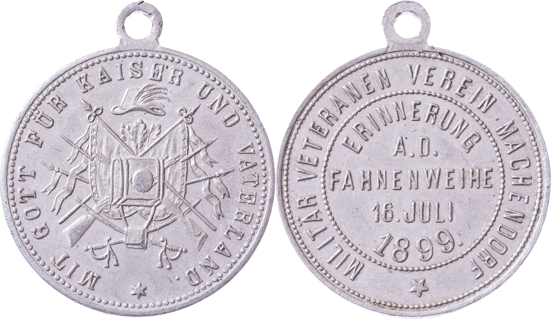 Machendorf (u Liberce) 1899 - založení a svěcení praporu 16.7., Nesign., hliník 29 mm s původním raženým ouškem, nep.hr., nep.rysky, patina R!