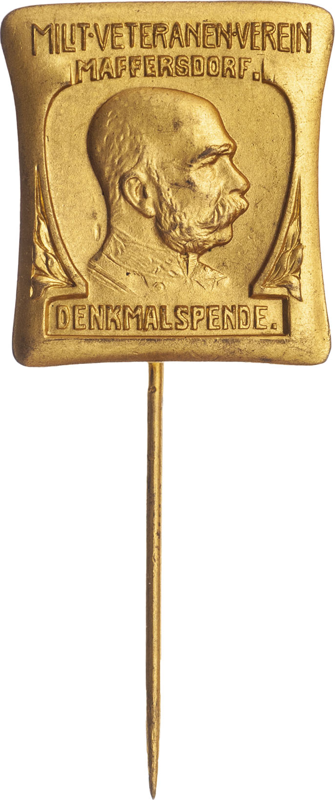 Maffersdorf (Vratislavice nad Nisou) b.l. - příspěvek na pomník císaře Fr.Josefa I., Nesign., zlac. mosazný odznak 22x24 mm s jehlicí, Indra.neuvádí