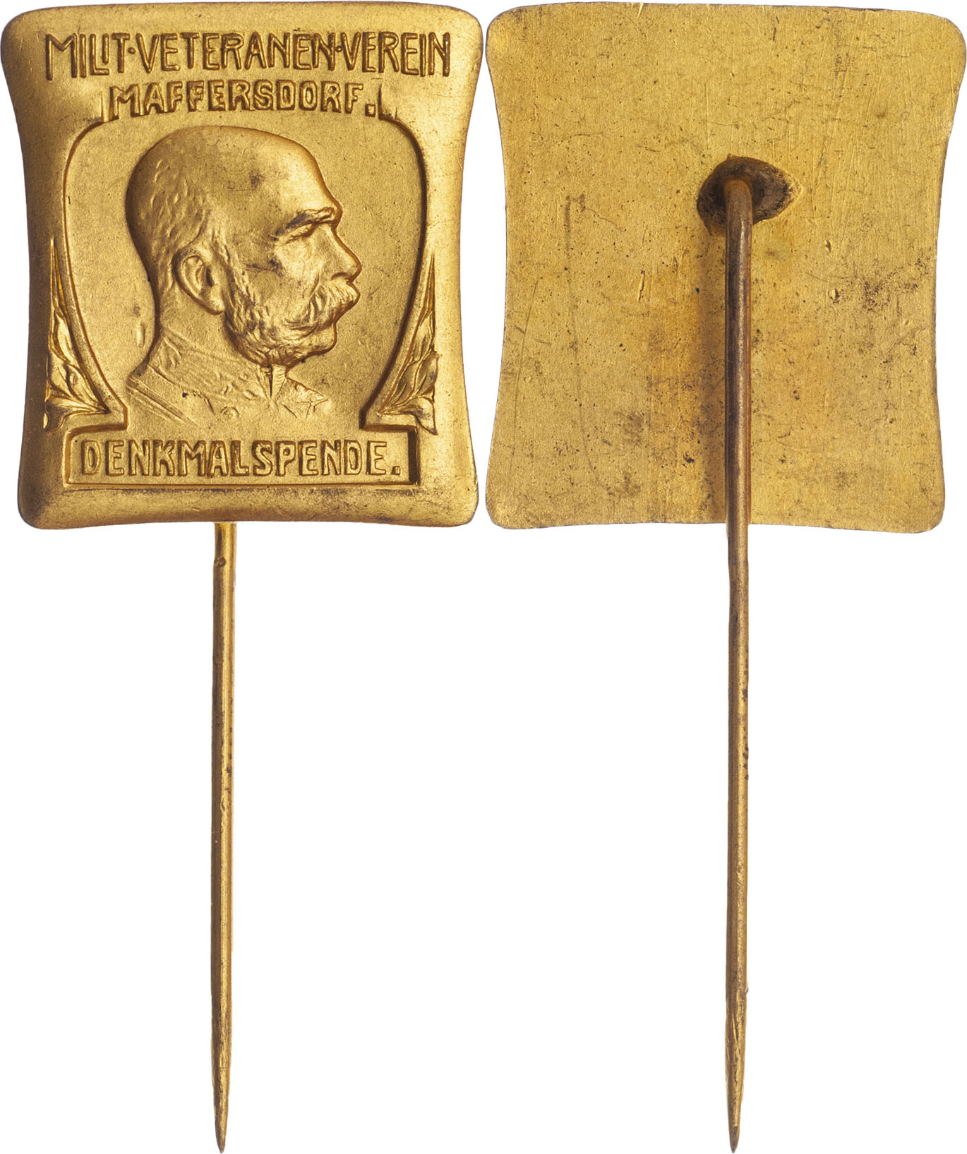 Maffersdorf (Vratislavice nad Nisou) b.l. - příspěvek na pomník císaře Fr.Josefa I., Nesign., zlac. mosazný odznak 22x24 mm s jehlicí, Indra.neuvádí