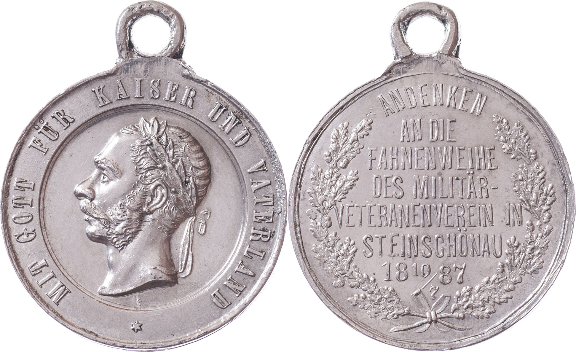 Steinschönau (Kamenický Šenov) 1887 - svěcení praporu 10.7., Sign.R, cín 30 mm s původní raženým ouškem, Indra.str.41, nep.hr., nep.rysky
