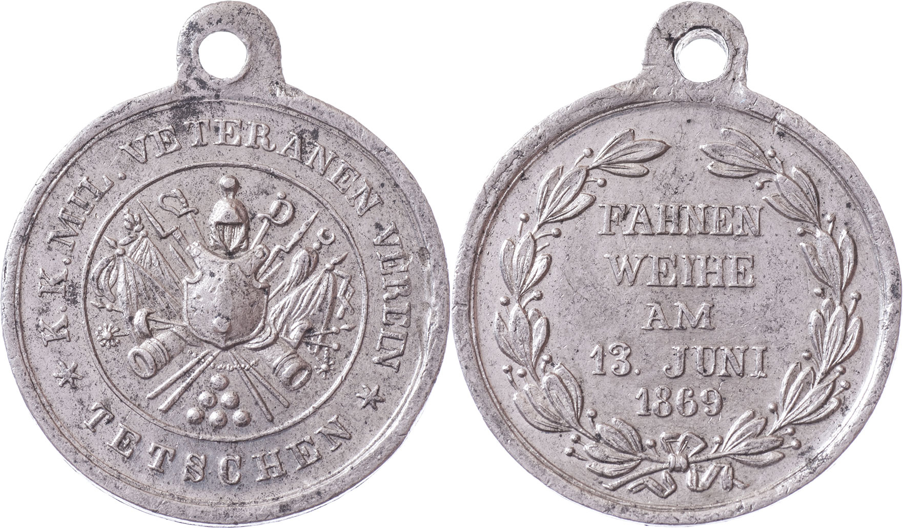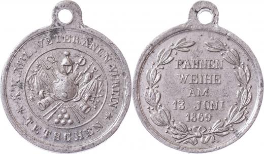 Tetschen (Děčín) 1869 - svěcení praporu 13.6., Nesign., cín 27 mm s původním raženým ouškem, Indra.str.38, nep.hr., dr.rysky