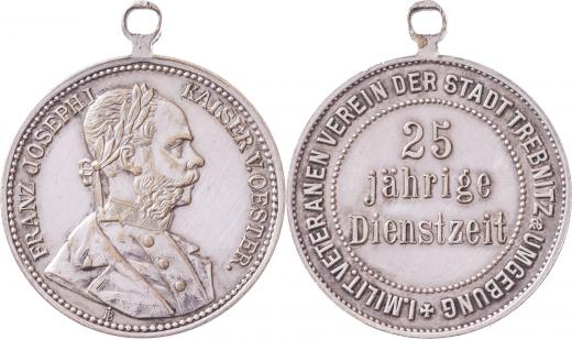 Trebnitz (Třebenice a okolí) b.l. - medaile za 25 let služby, Sign.IB, postříbřená mosaz 28 mm s původním raženým ouškem, nep.rysky, patina, téměř