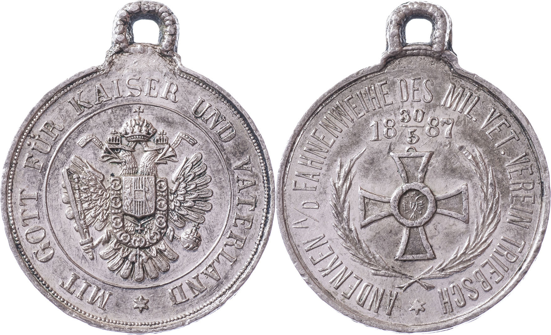 Triebsch (Třebušín u Litoměřic) 1887 - svěcení praporu 30.5., Nesign., cín 27 mm s původním raženým ouškem, Indra.str.50, nep.hr., nep.rysky, téměř