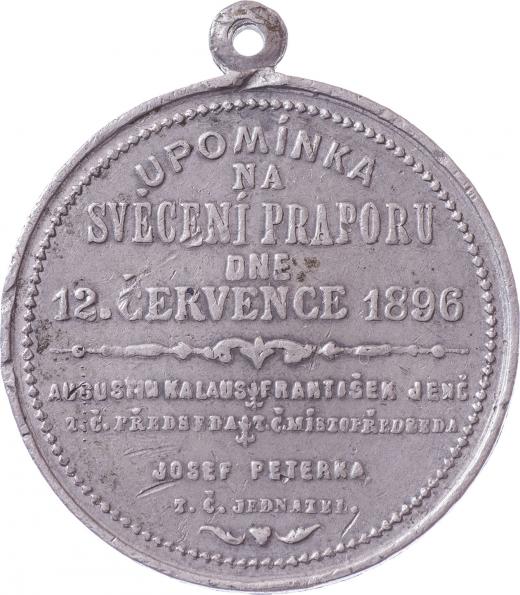 Třebenice a okolí 1896 - svěcení praporu 12.7., Nesign., cín 40 mm s původním raženým ouškem, Indra.str.50, hr., rysky, patina