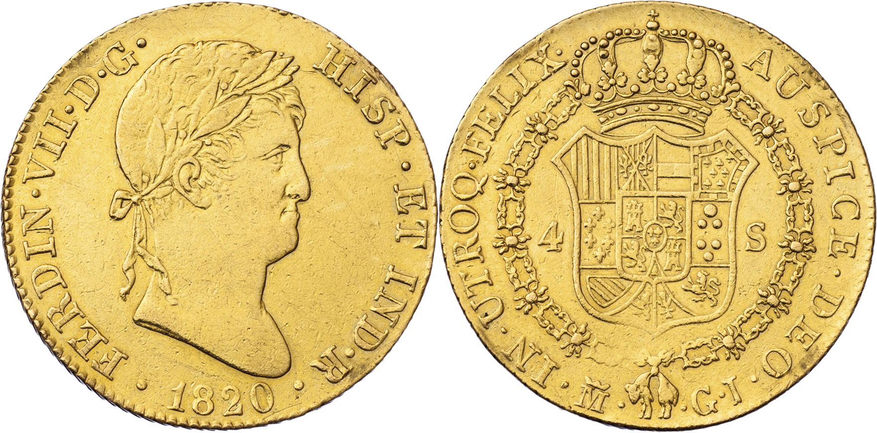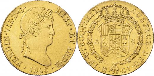 4 Escudos 1820 M-GJ, Madrid, KM.484, 13.472g, nep.hr., rysky R!