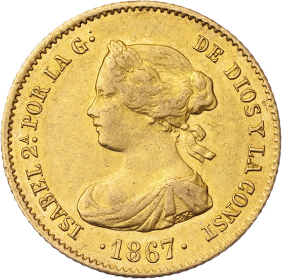 4 Escudos 1867, Madrid, KM.631.1, 3.340g, nep.hr., nep.rysky