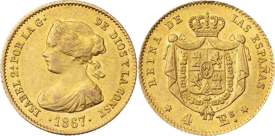 4 Escudos 1867, Madrid, KM.631.1, 3.340g, nep.hr., nep.rysky