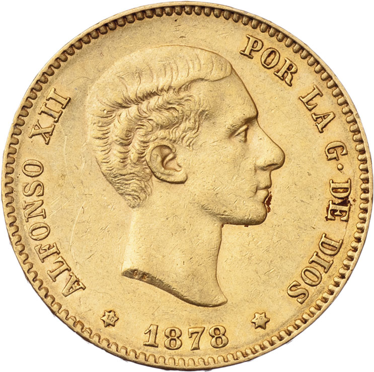 25 Peseta 1878/1878 DE-M, KM.673, 8.049g, dr.hr., nep.rysky, patina, téměř