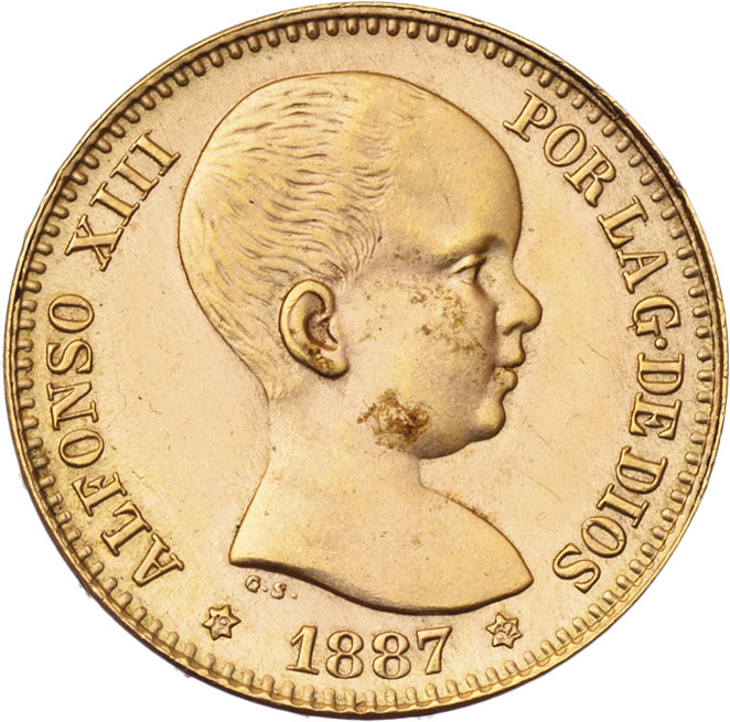 20 Peseta 1887/1962 PG-V, novoražba - jako KM.693 (pouze 11.000 ks), 6.454g, dr.vada materiálu v Rv., hr., nep.rysky, patina