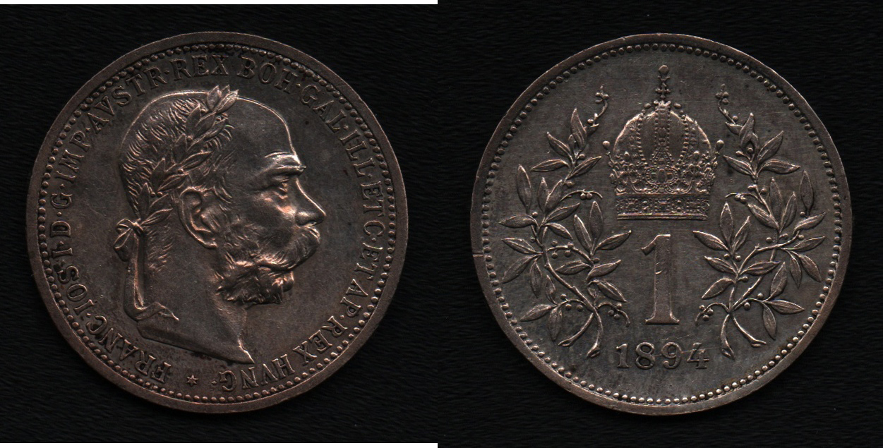 Koruna 1894, 5.015g, nep.hr., nep.rysky, pěkná patina, téměř