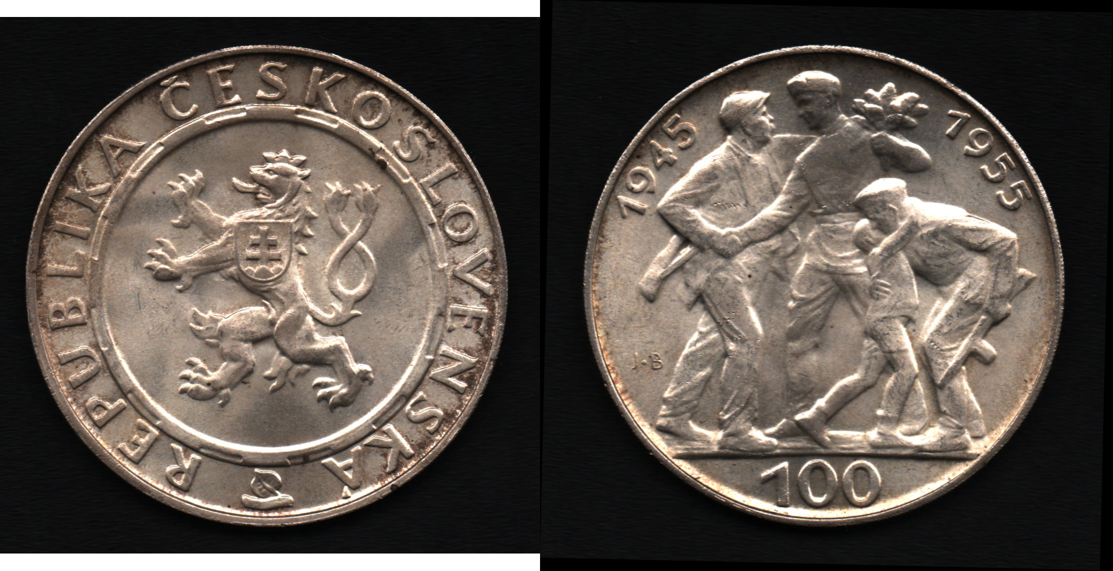 100 Kčs 1955 - Osvobození - Sign. JB širší bez patek, dr.hr., dr.rysky, patina, téměř