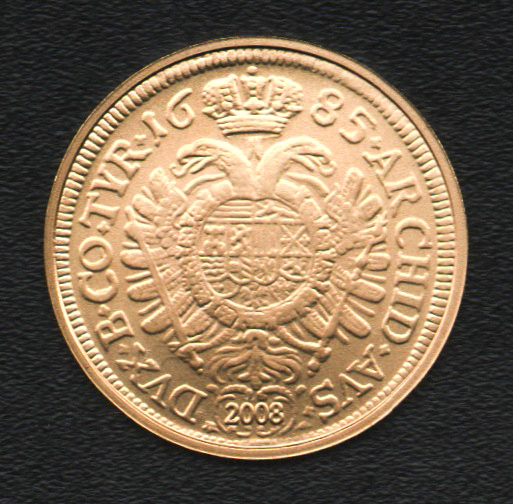 Dukát 1685 - novoražba 2008, Au585, 18mm, 1.994g, kapsle, certifikát
