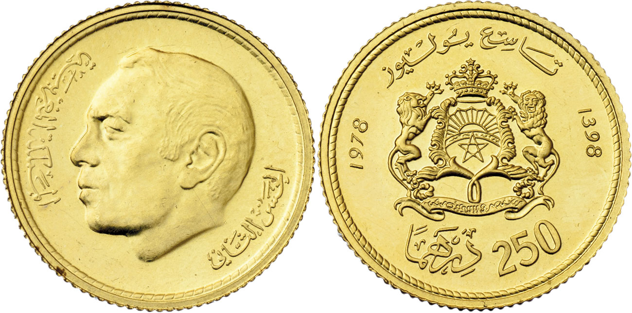 250 Dirhams, AH.1398 = 1978, Y.66 (Au900, pouze 2.000 ks), 6.520g, nep.hr., nep.rysky, téměř R!