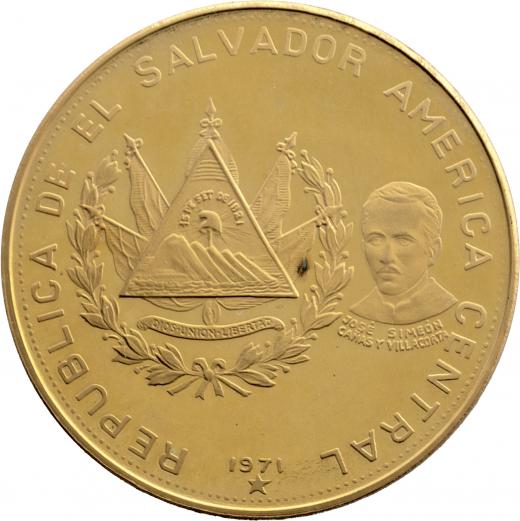 200 Colones 1971 - 150 let nezávislosti - chrám v Panchimalcu, KM.146 (pouze 2.246 ks), 23.590g, v reversu číslováno "1178", patina