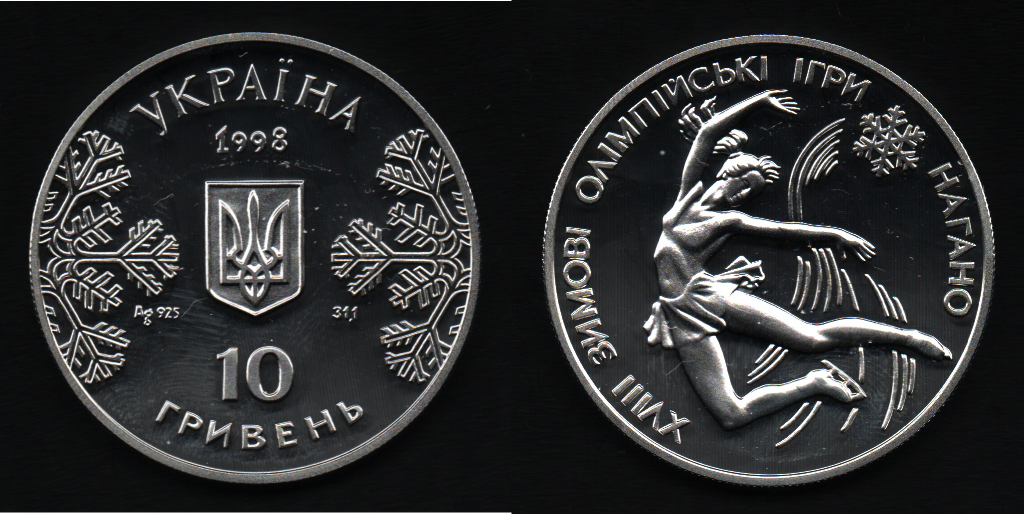 10 Hřiven 1998 - ZOH Nagano - krasobruslení, KM.52 (pouze 7500 ks), kapsle