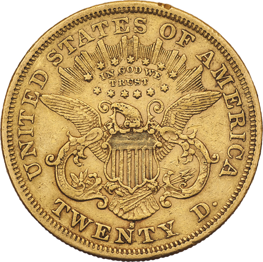 20 Dolar 1875 S - hlava Liberty, KM.74.2, 33.355g, hr., dr.rysky, patina