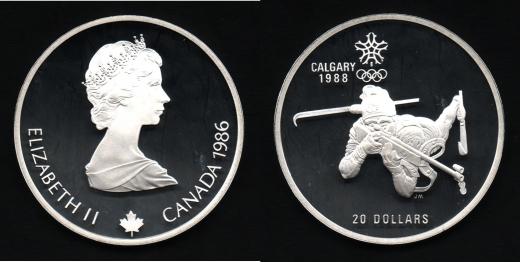20 Dolar 1986 - Calgary - biatlon, KM.147, kapsle