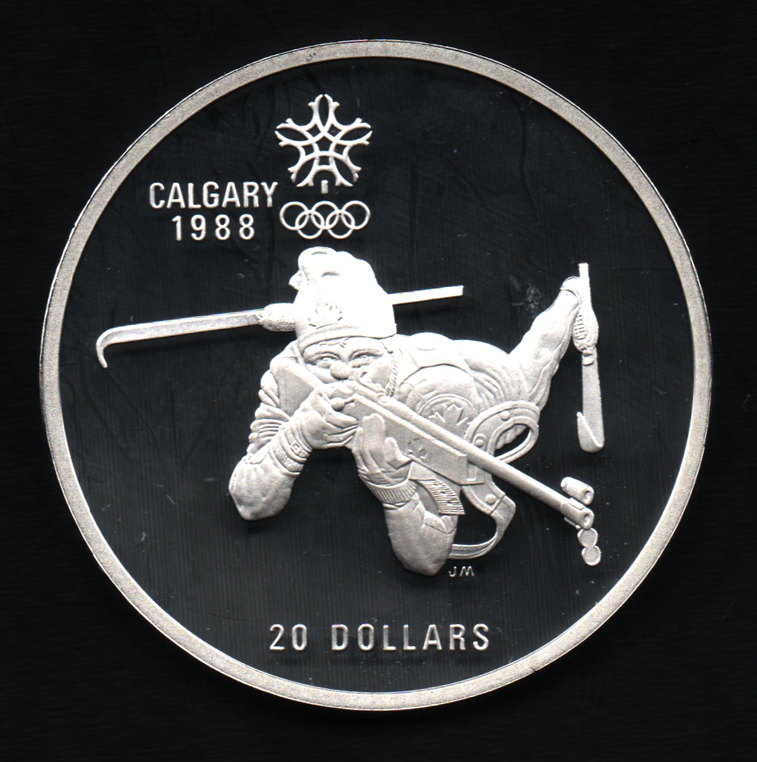 20 Dolar 1986 - Calgary - biatlon, KM.147, kapsle