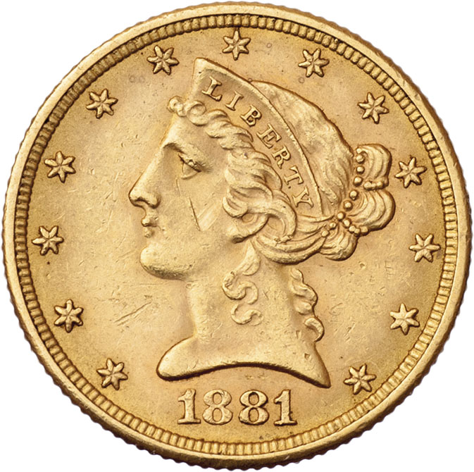 5 Dolar 1881 - hlava Liberty, KM.101, 8.358g, nep.škr., nep.rysky, patina