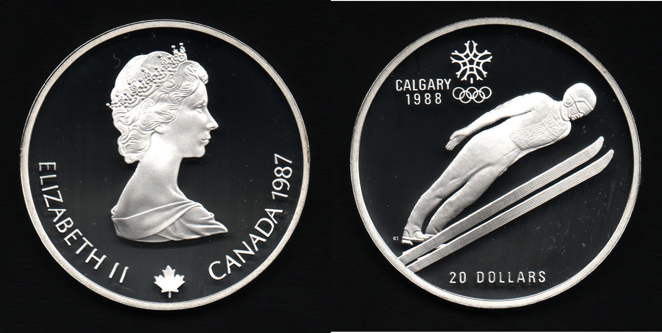 20 Dolar 1987 - Calgary - skoky na lyžích, KM.159, kapsle