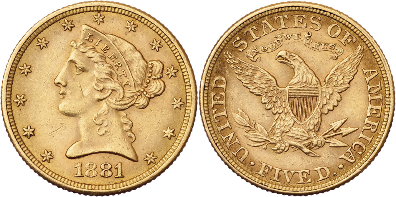 5 Dolar 1881 - hlava Liberty, KM.101, 8.358g, nep.škr., nep.rysky, patina