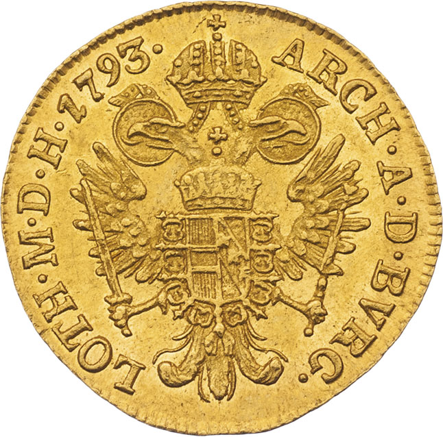 Dukát 1793 E, Karlovský Bělehrad, 3.485g, nepatrné vady razidla, nep.rysky, patina R!