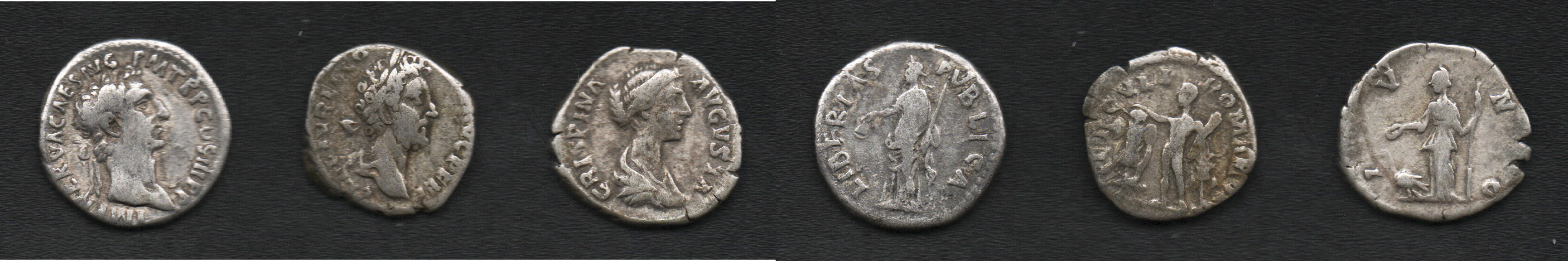Konvolut denárů (Nerva, Commodus, Crispina), patina 3ks