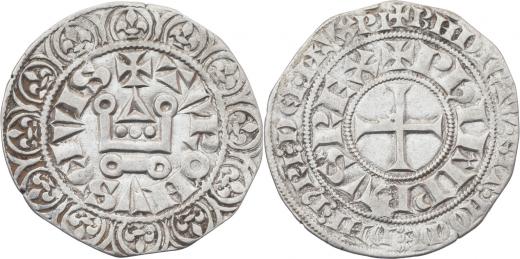 Tourský groš b.l., kříž, dvojitý opis / styliz. hrad, opis, kruh královských lilií, podobný jako Ciani.200, podobný jako De Wit.I.274, 3.726g, pěkná patina