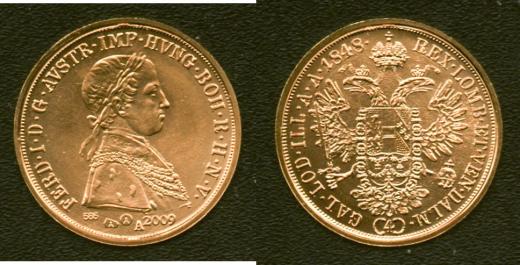 4 Dukát 1848 - novoražba 2009, Au585, 18mm, 1.981g, kapsle, certifikát