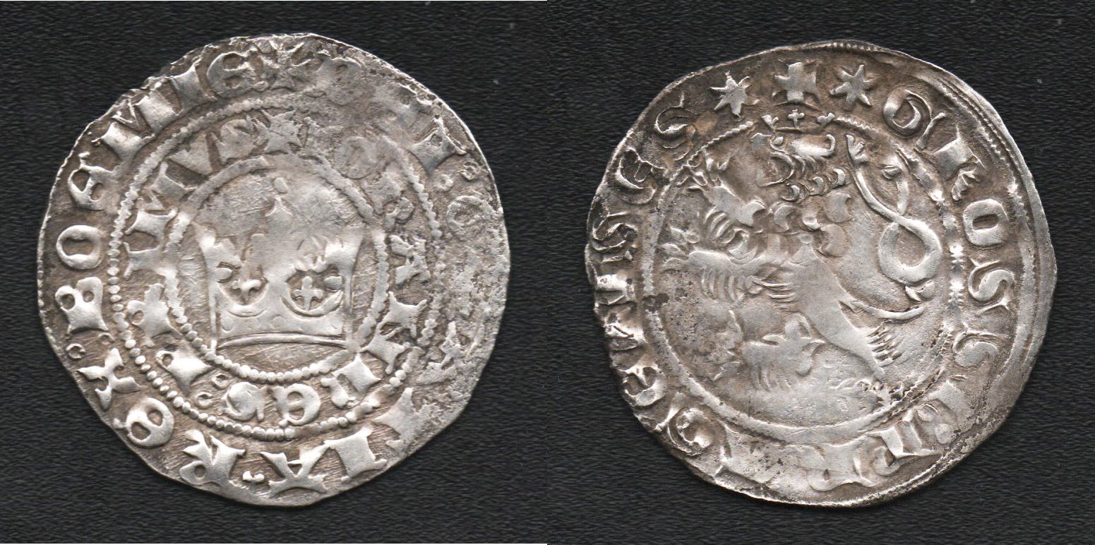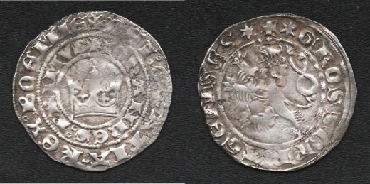 Pražský groš, Cn.2, bez rubní značky, 3.783g, nep.nedor., mírně kor., patina