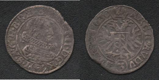 3 Krejcar 1630, Praha-du Bois, J.29a, MKČ.761, 1.520g, krajový střížek, nedor., pěkná patina