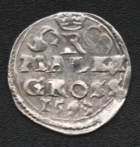 Malý groš 1593, K.Hora-Herold, HN.8 (opis 7a), nápis " MALEY / GROSS / 1593 ", 1.111g, nep.exc., nedor., pěkná patina