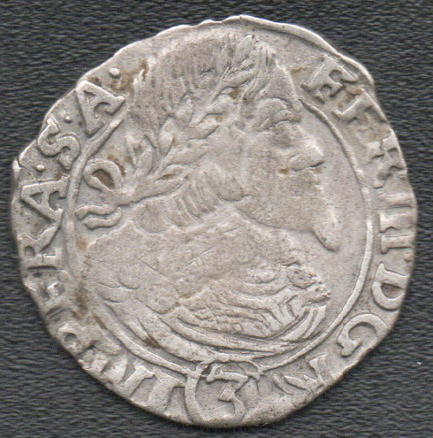 3 Krejcar 1654, K.Hora-Hackl, J.5, MKČ.1197, 1.262g, nedor., nepravidelný okraj střížku, patina