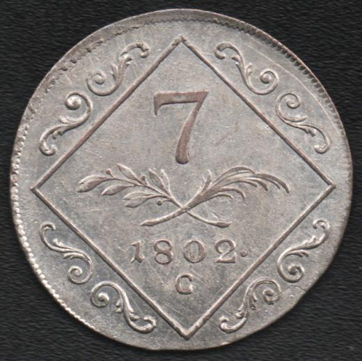 7 Krejcar 1802 C, 4.900g, nep.just., patina, téměř