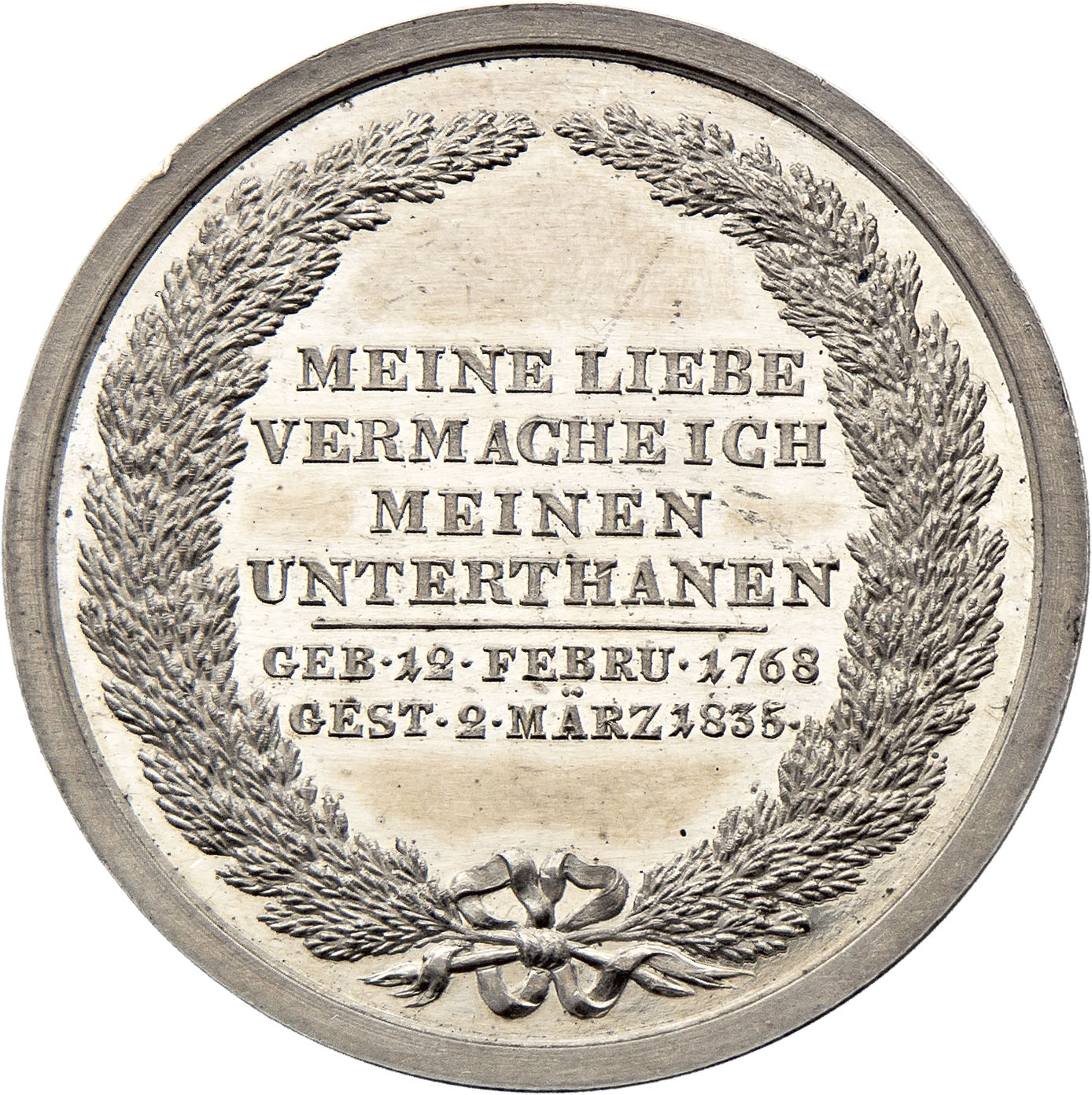 Nesign. - AR úmrtní medaile 2.3.1835 - poprsí zprava, německý opis / 6-řádkový německý nápis ve věnci, Ag 43mm, 26.357g, M.2535, H.3481, nep.hr., vl.škr.