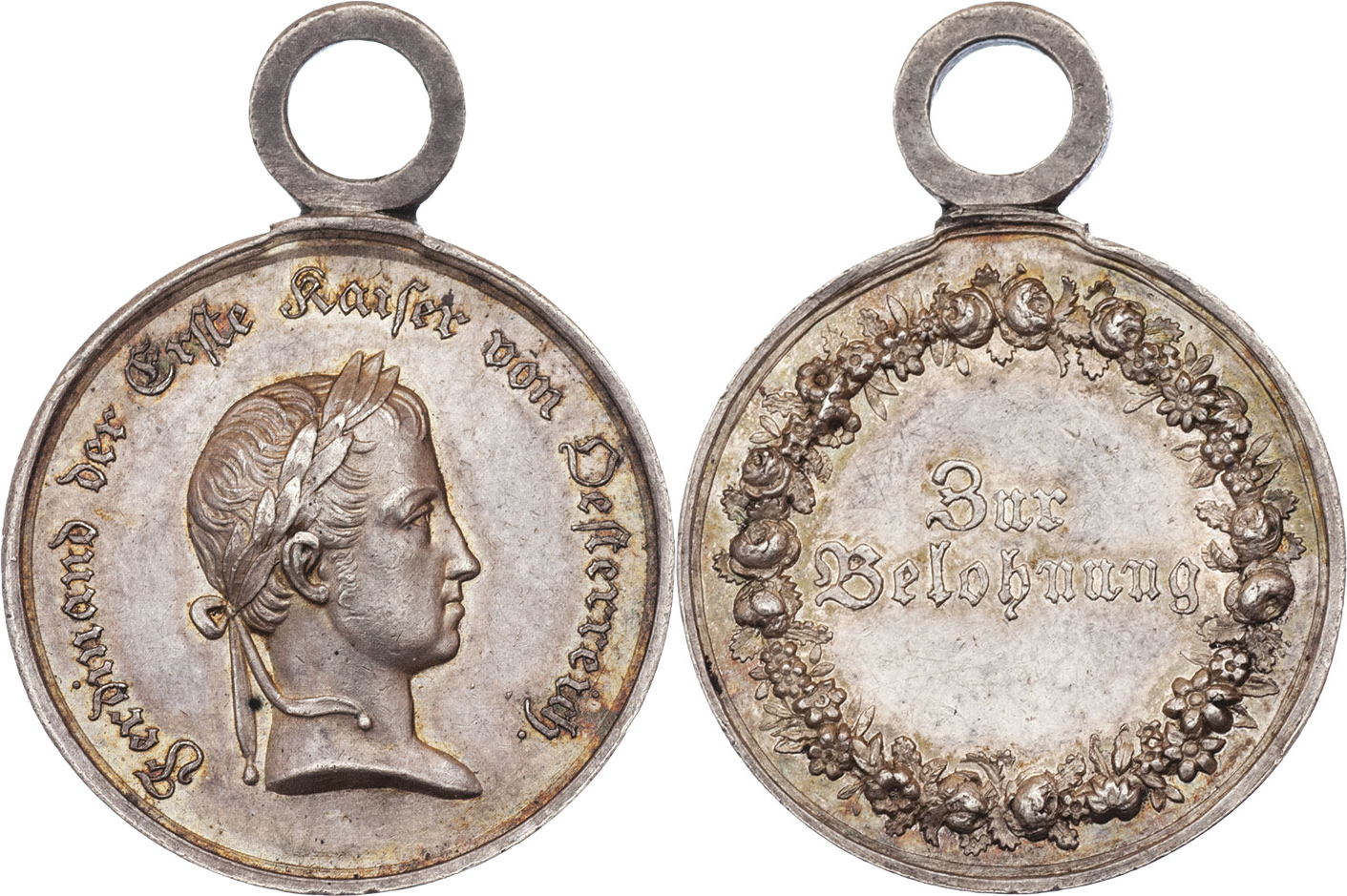 Böhm - školní prémie b.l. - poprsí zprava, německý opis / nápis v květin. věnci, Nesign., Ag 22 mm s původním ouškem, 4.319g, Haus.148, pat., téměř R!