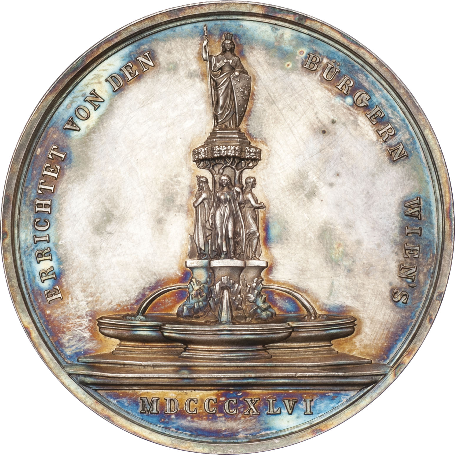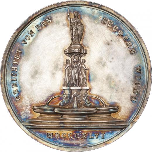 Vídeň - zřízení kašny "Schwanthaler-Brunnen" 1846 - hlava zprava, opis / kašna, opis a vročení, Sign. Lange, Ag 49mm, 56.870g, M.2624, H.3651, nep.rysky