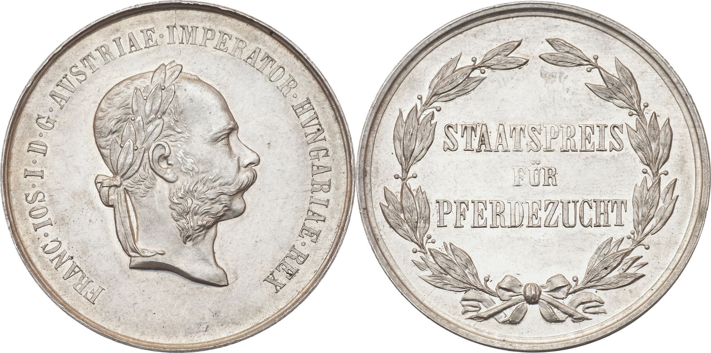 Sign.JC - Státní cena za chov koní b.l. - hlava zprava, latinský opis / 3-řádk. něm. nápis ve věnci, Punc., Ag 40mm, 15.342g, jako ČS.1567, nep.rys., pat.